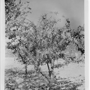 Photo, black and white: Ripe plum trees at Gold Ridge Experiment Farm. Plum tree QQ-23 (E.T.) July 25, 1928.