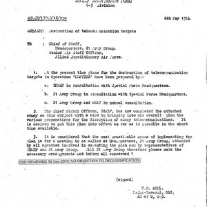 Image / H. R. Bull memo regarding destruction of telecommunication targets, with attachment