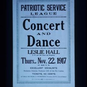 Patriotic Service League concert and dance to be held at Leslie Hall ... 1917