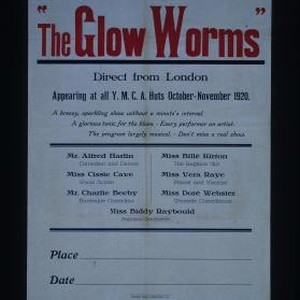 A new entertainment Company - "The Glow Worms". Direct from London. Appearing at all Y.M.C.A. Huts October - November 1920