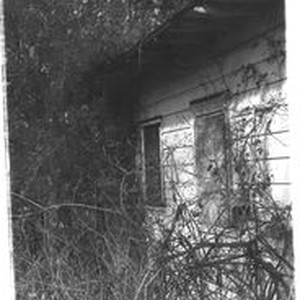 Photo- black and white: Luther Burbank cottage before renovations began in 1983. Picture taken in 1978. Background: After Burbank died in 1926, Mrs. Burbank established an apple orchard on a portion of the Farm and leased the rest to Stark Bros. Nursery. When their lease expired in 1957 the property deteriorated and subsequently passed into new ownership. Local historians, intent on preserving the Burbank legacy in Sebastopol, formed the Western Sonoma County Historical Society in 1974. The cottage was placed on the National Register of Historic Places in 1978. The City of Sebastopol worked with the Society in its efforts to obtain 3 acres of the original farm and to restore the Cottage. Restoration began in 1983.