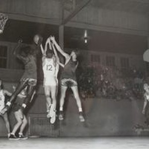 Photo--Black and white: Analy High School basketball B team of 1949-50. Analy Tigers vs Tamalpais Analy 26--Tamalpais 28.
