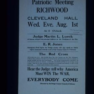 Patriotic Meeting. Richwood. Cleveland Hall ... hear the Judge tell why America must win the war. Everybody come. Directed by the Dodge County Council of Defense