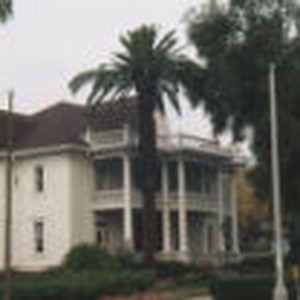 The Seaver House located on the corner of Bonita and College in Claremont surrounded by foilage.