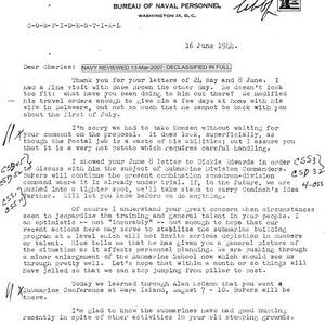 Image / L. E. Denfeld letter to Vice Admiral C. A. Lockwood