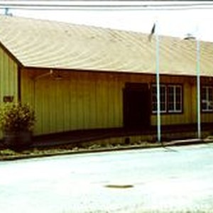Slide, Eastman Color Transparency: Duncans Mills freight shed of the historic Railroad Depot (Parks and Recreation building) Winner of Preservation Award in 1979.