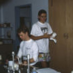 John Angus and Fernando Araujo work on a lab experiment.