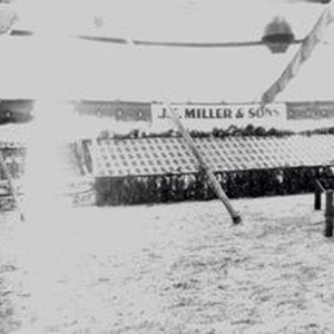 Photo--black and white: Gravenstein Apple Show display of J. F. Miller & Sons apples of Healdsburg and Forestville. Circa 1930s