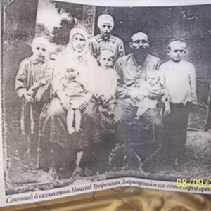 5 photographs of evangelist Nikolai Trofymovych Dobrogorsky, Odessa, Ukraine, before 1935 and on 2011 September 10. Included is an historic photograph "The union evangelist Nicholas Trofymovych Dobrogorsky and his family before he was arrested in 1935", 2 photographs of Dobrogorski with A.A. Desiatnik and another man at a dinner table, and 2 photographs of Dobrogorski seated in a blue chair. [Description English/roman)] 5 фотографій євангеліст Николай Трофимович Доброгорский, Одеса, Україна, до 1935 року і на 2011 10 вересня. У комплекті є історичні фотографії "Союзный благовестник Николай Трофимович Доброгорский и его семья перед арестом в 1935 г.", 2 фотографії Dobrogorski з А.А. Десятник і ще одна людина за обіднім столом, і 2 фотографії Dobrogorski сидить у синьому кріслі. [Description (original non-English/roman language/script)]