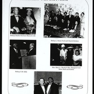 Pages regarding the Church of God in Christ "Reflections… 'past and present'" & "In memory of our sainted founder…", after 1961. From an unidentified publication. [Description English/roman)]
