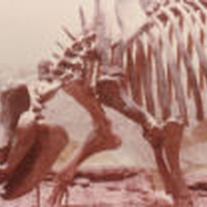 Close-up of a skeleton of a large-hoofed mammal from the Oligocene epoch.