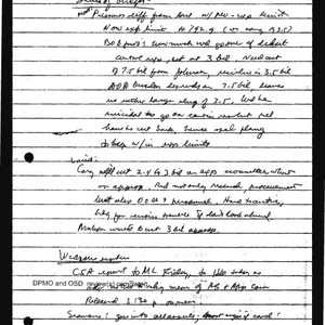 Notes on status of budget and weapons systems