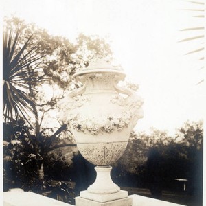 Image / Decorative urn on the south terrace of the Huntington residence