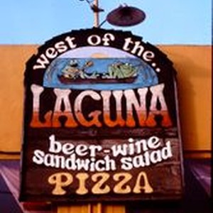 Slide, Kodachrome color: Sign of the West of the Laguna caf, advertising beer, wine, sandwiches and salads. February, 1977