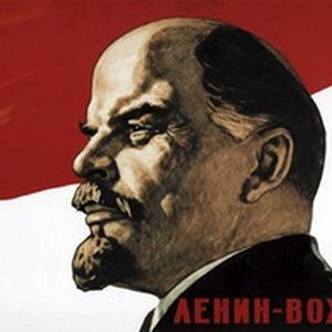 Soviet poster dedicated to V.I. Lenin. Caption reads, "Ленин — вождь! / Lenin -- vozhd'!", meaning, "Lenin is our leader!". [Description English/roman)]