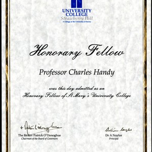 Original: Charles B. Handy's St. Mary's University College honorary fellow certification, January 22, 1999; Charles Handy Papers; Box 12, Folder 4; 1 page