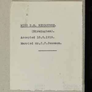 Candidate forms photo of Elsie Jameson (nee Rebourne) applicant references. [Description English/roman)]