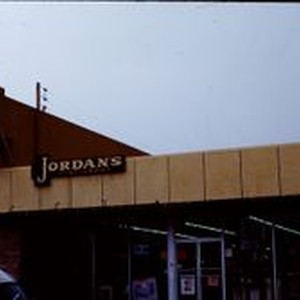 Slides, Kodachrome color transparency; The Jordan's Stationery store in the 100 block of North Main Street in Sebastopol, February, 1977. Pease Pharmacy is seen to the left.