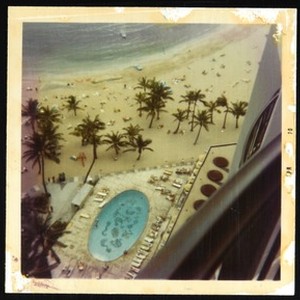 Packet 11: photograph of pool and beach from the balcony of an unidentified hotel, Hawaii?, 1970 April. [Description English/roman)]