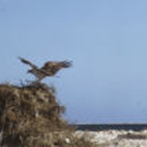 An osprey landing on its nest located on Shell Island.