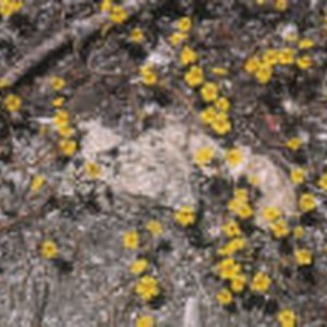 Small yellow flowers grow on rocky surface at Taft Point Trail.