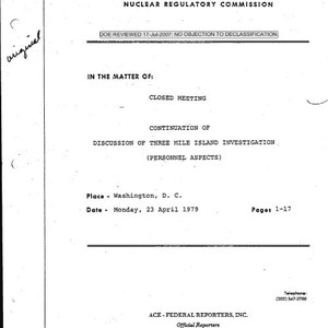 In the matter of closed meeting on the continuation of discussion of Three Mile Island investigation (personnel aspects)