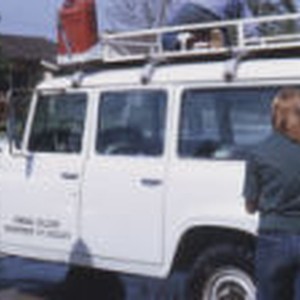 John Vallee, Chip Hogue, and Allison Johnson cleaning the Travelall.