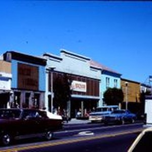 Slides, Kodachrome color transparency; Downtown Sebastopol on North Main Street, July, 1976. Stores seen are Green Fingers, Analy Bazaar, Pine Cone Restaurant and Fountain.
