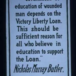 "Government re-education of wounded man depends on the Victory Liberty Loan. This should be sufficient reason for all who believe in education to support the Loan." Nicholas Murray Butler