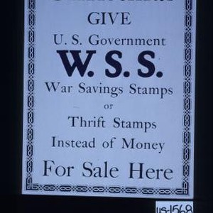 Christmas give U.S. government W.S.S. War Savings Stamps or Thrift Stamps instead of money. For sale here