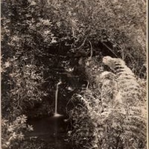 Photo, black and white: Spring in Rincon Park in Santa Rosa. Caption on photo: " 423 S. The spring, Rincon Park, Near Santa Rosa. Turrill and Miller Photo."