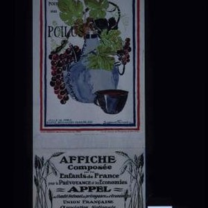 Reservez le vin pour nos poilus ... Affiche composee par les enfants de France pour la prevoyance et les economies. Appel du Comite national de prevoyance et d'economies, Union francaise, Association nationale pour l'expansion morale et materielle de la France