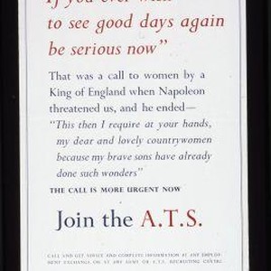 "If you ever wish to see good days again be serious now." That was a call to women by a King of England when Napoleon threatened us... The call is more urgent now. Join the A.T.S. Call and get advice and complete information at any employment exchange or at any Army of A.T.S. Recruiting Centre
