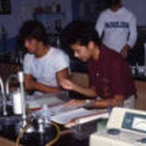 Chase Boyd and Janis Chang working together on the lab experiment.
