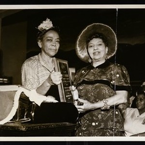 Photograph of an unidentified woman receiving an award, Church of God in Christ national convention, Miami, Florida, [s.d.]. "the negative for this print no. … on file at Associated Photographers, 139 N.E. 2nd St., phone 3-4774, Miami[?] 32, Florida" -- stamped on back. [Description English/roman)]
