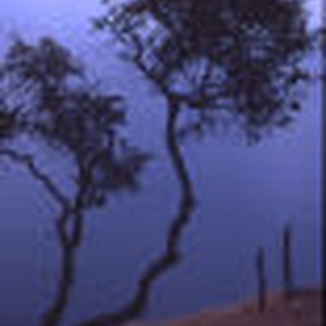 Two trees on cliff against sky at Camp Fox.