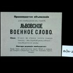 Image / Prinimaiutsia ob"iavleniia dlia pomeshcheniia v gazetie L'vovskoe Voennoe Slovo