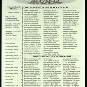 Advocate, vol. 1, no. 1 (2002 May-June). COGIC (Church of God in Christ) scholars fellowship. [Description English/roman)]