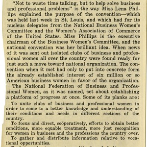 Development and platforms of the National Federation of Business and Professional Women. Publisher unknown.