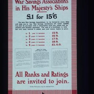War savings associations in His Majesty's ships ... the new war savings associations to be formed in every ship will help you to buy war savings certificates on easy terms. You will be provided with a subscription book ... all ranks and ratings are invited to join