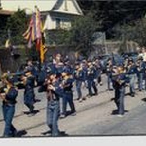 Photo--color, mounted: Apple Blossom Parade in Sebastopol 1974 with a Boy Scout / Cub Scout group marching.
