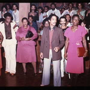Image from a collection of 35mm photographic slides depicting nightlife events, circa 1970-1977, including images of a Sylvester concert and what may be Halloween 1977. The images predominantly depict Black performers and attendees, including people in costumes and drag. These slides were salvaged by the donor, Deborah Deegan.