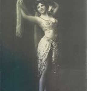 Postcard--black and white, photo: woman in exotic fashion. Top right corner printed "Hero"