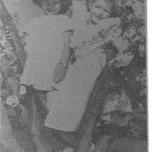 Photo--black and white, mounted: Three girls standing in an apple tree in blossom, celebrating the Apple Blossom Festival. The girls are: L- Meredith Shelton, attendant, middle: Kathleen Fleming, Princess and right, Helen Inman, attendant. Circa 1940
