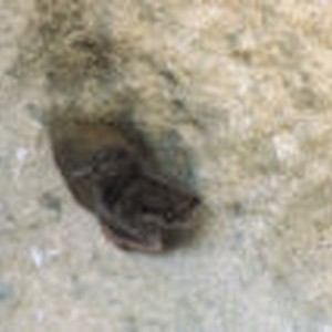 American black oystercatcher chick in rock indentation.