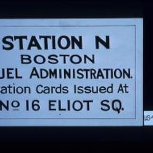 Station N, Boston Fuel Administration. Ration cards issued at No. 16 Eliot Sq