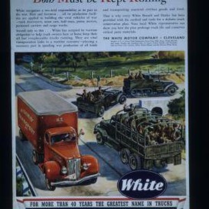 Both must be kept rolling. White recognizes a two-fold responsibility as its part in the war. First and foremost - all its production facilities are applied to building the vital vehicles of war - tank destroyers ... The White Motor Company, Cleveland. For more than 40 years the greatest name in trucks