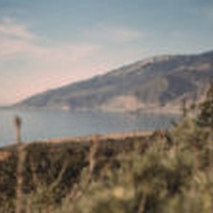Panoramic view of the Santa Lucia Range as it meets the Pacific Ocean.