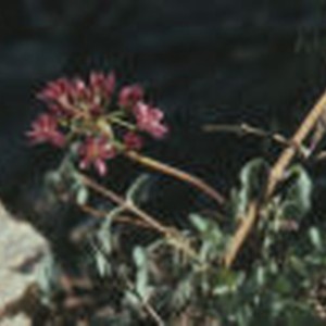 Reddish purple flowers stem from a brown branch on Mount Pinos at 8831 feet elevation.