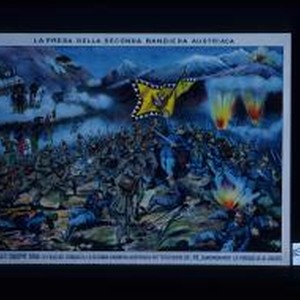 La presa della seconda bandiera Austriaca. Il soldato Guiseppe Erba de frascati, conquista la seconda bandiera Austriaca sotto gli occhi del Re, guadagnando la Medaglia al valore